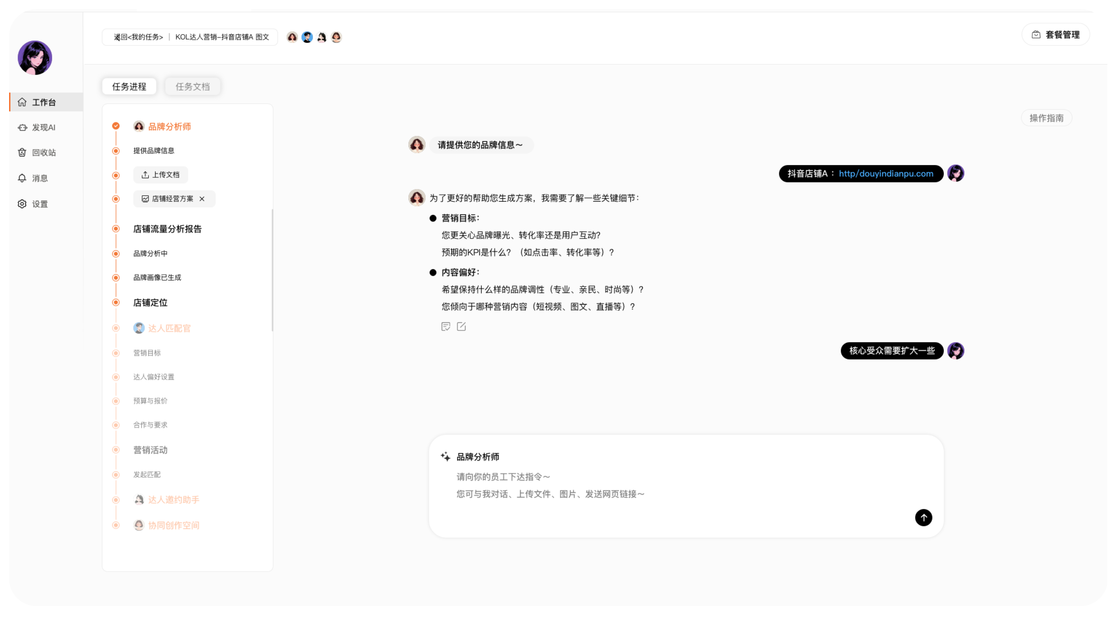 专为本地生活商家打造的智能达人营销平台,您只需轻松发令,AI数字员工团队将协作完成从分析、策划到执行、监督的任务闭环,让您事半功倍
